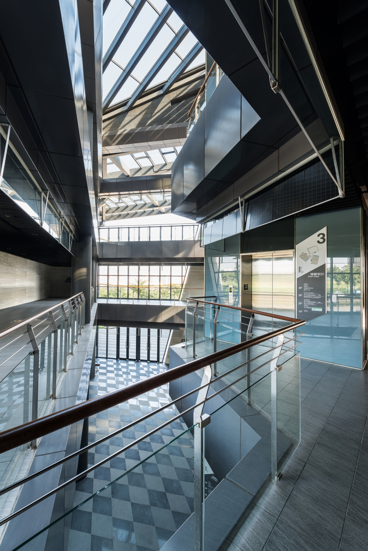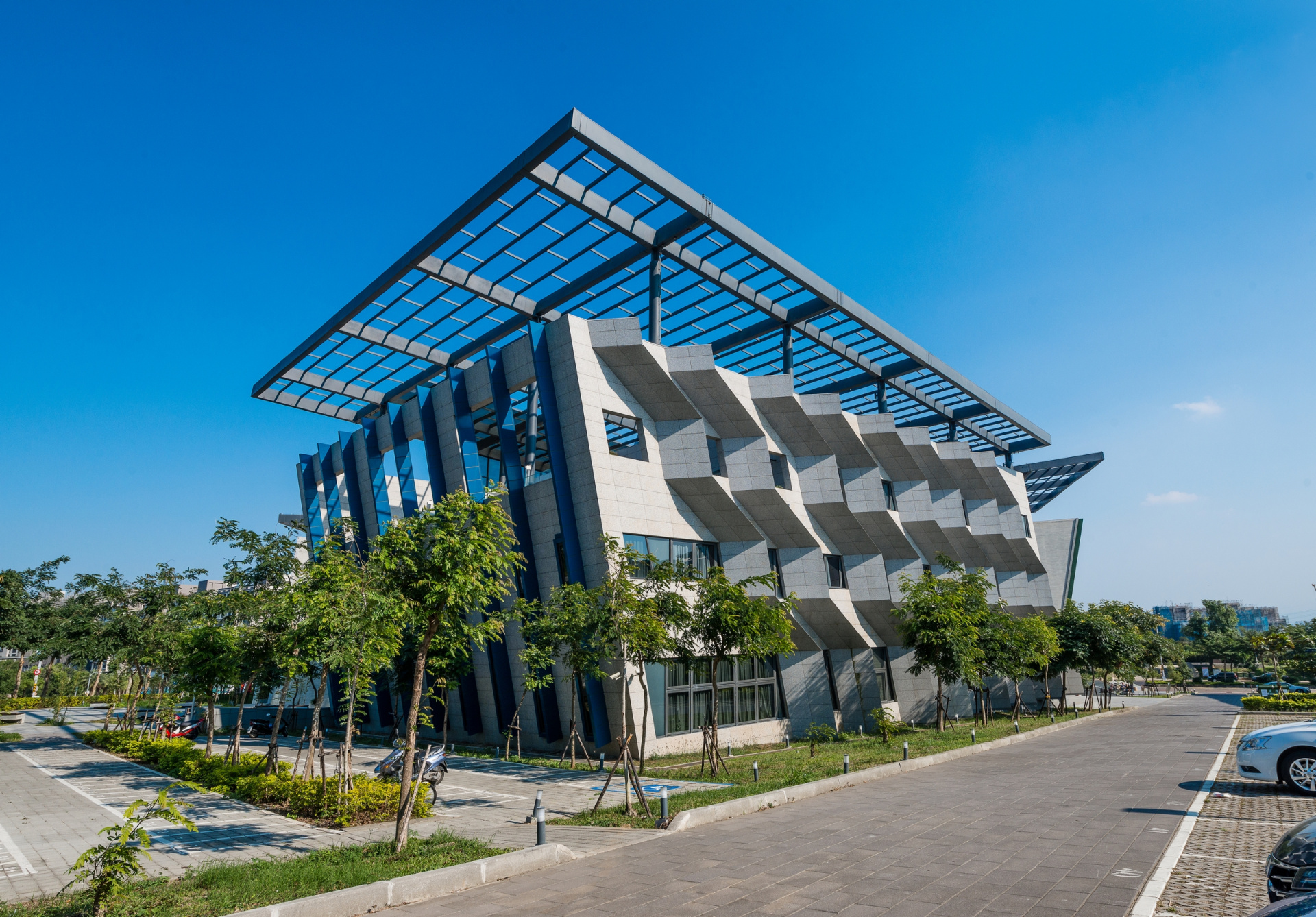 The Project provides administrative, leisure, sports, gathering needs for the Industrial Park. The Center acts as the nucleus of the Park and its site is at a the Park's front gate . We have categorized various spaces of the program into three types: administrative, commercial and convention, performance and sports, and propose a windmill layout with three main volumes that also responds to the triangular shaped lot. An atrium is provided at the center to provide the most efficient circulation and energy consumption through chimney effect. Gear is proposed to be the main motif, both on the ever-revolving plan as well as grooved double layered facade. A huge trellis is provided to cover all three volumes to provide solar panel installation and shading on the rooftop that offers spectacular view of the City. The central "Chimney" also serves a wind catcher and a lighthouse, also a main feature of the building.