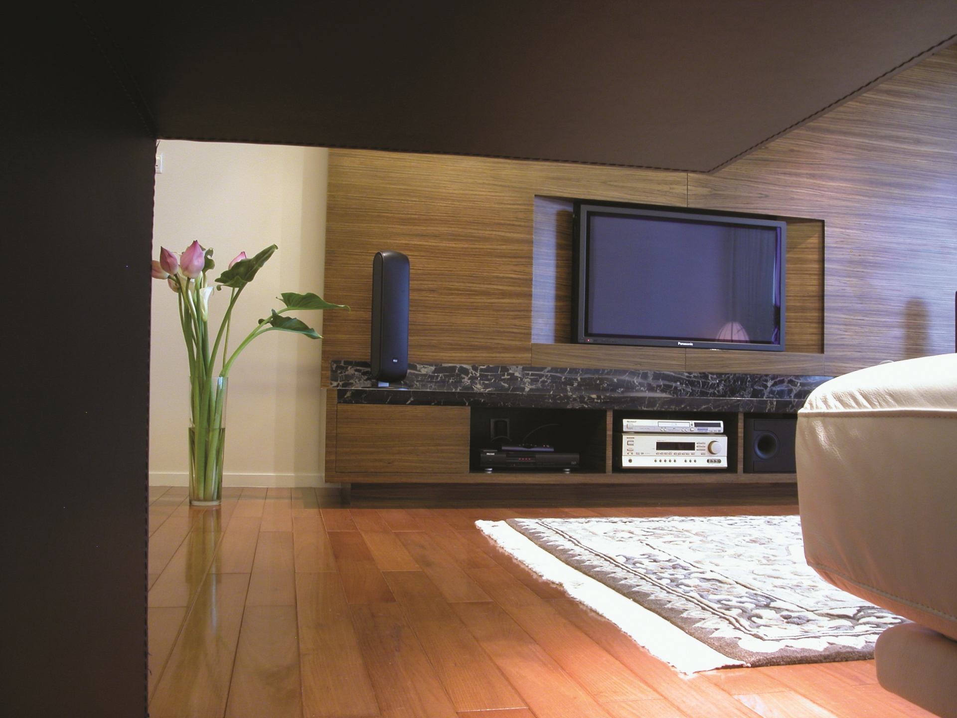 生活移植-組構三代家庭業主是三代同堂的家庭,移居上海,除了社區的名字帶點異國風,需要的最終還是各自的隱私。共用的餐廳廚房可以分享溫暖,各自的起居空間又提供了釋放壓力的開口;擺在中間的,自然就是兩代的共同關注─兒童房。在此面積不大的雙拼住宅中,剪力牆結構系統封鎖了讓部分空間縮放的可能,但流動的視線和自然的光線,依然是設計師念茲在茲的目標。於是書房和客房成了變色龍,靠著一面多表情的牆,隨時可以融入客餐廳的公共空間,或是繼續堅持獨立的私密自我。配置這個難題,就在一道牆中找到了解答。沒有面具的細部失去厚度的材料是寂寞的,埋在飾板裡的家具是冤枉的。從簡單的細部處理中,我們看見還原材料本性的誠心誠意。石材和木材的結合,不需要粉飾,因為立面就是剖面,外表即是內在。先進的電漿電視也不需要躲躲藏藏,一個斜面大筆一揮,不可思議的薄就被凸顯出來。細心處理的材質和顏色,不是為了裝飾,只是為了讓空間理直氣壯所做的努力。門和牆的依存關係也同時受到挑戰─門就是牆的一部份,牆也像門一樣可以移動打開。誰是誰,誰又不是誰,只要演的精采,沒有誰必須有絕對的名字。