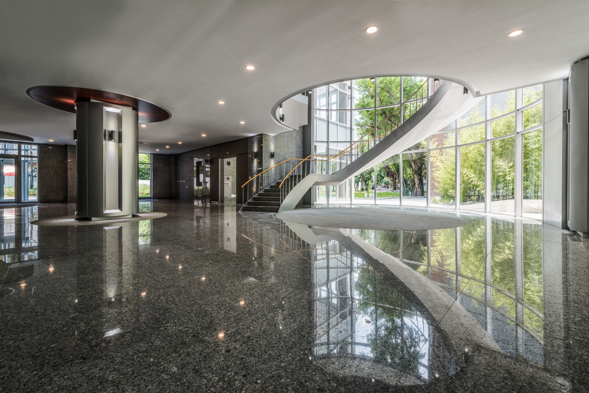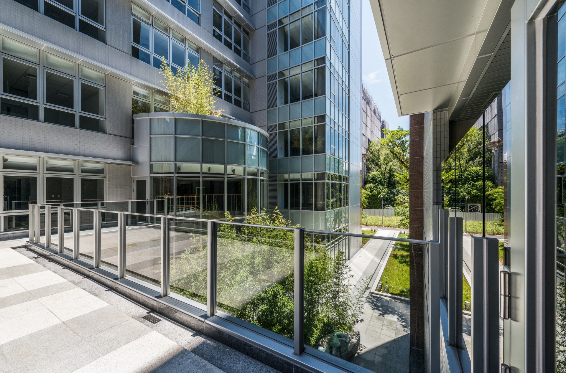 RC結構,烤漆鋁板與隔柵,花崗石外牆,噴植草外牆