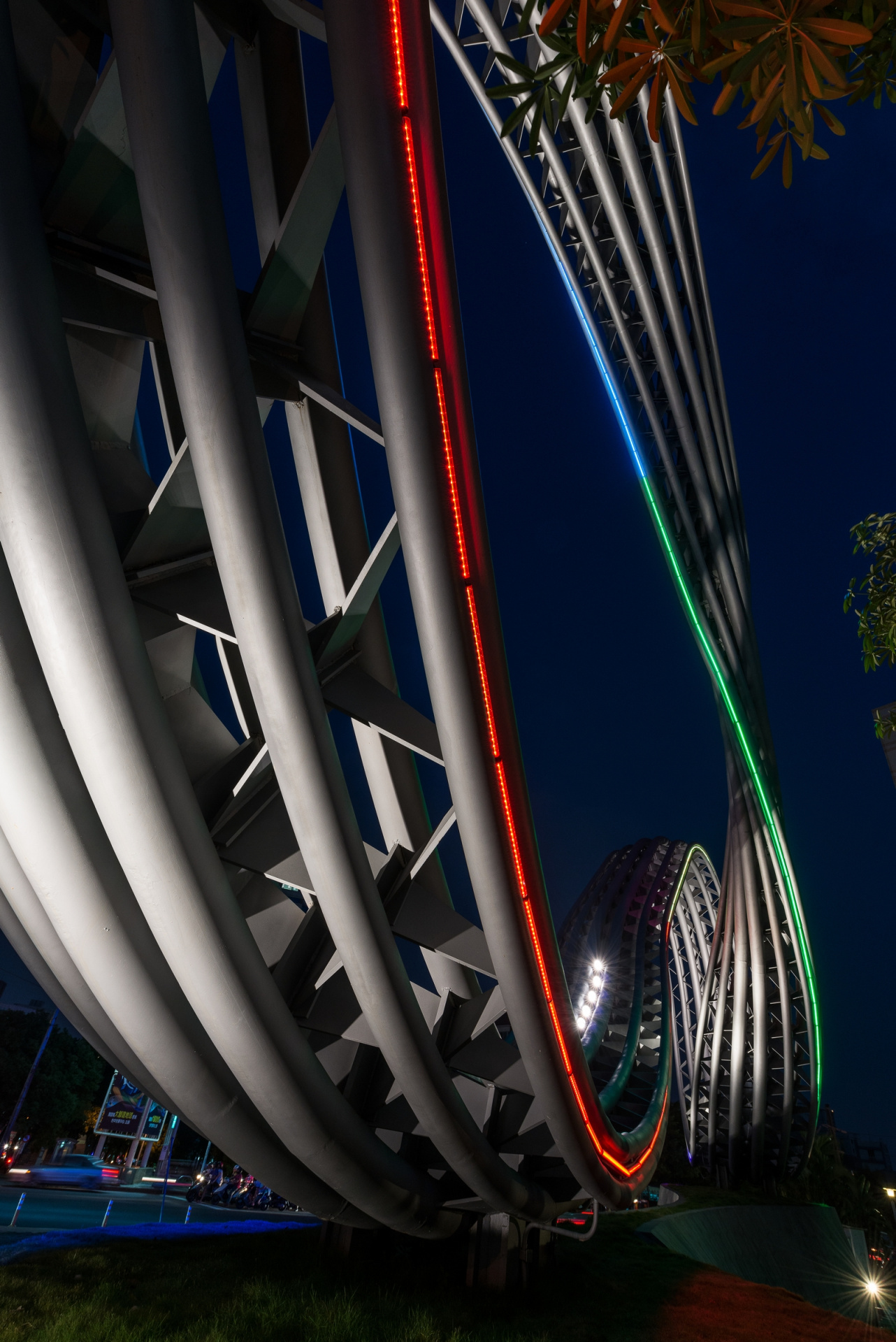 因為臺中工業區沒有面臨臺灣大道,本設計就是在面臨臺灣大道的角地公園上,提供一代表工業區入口的識別象徵, 採用的意象是「莫比烏斯環Mobius Strip」: 是一個所謂拓樸學的結構,其特色是旋轉不息,在轉兩圈之後才會回到同一個面。 莫比烏斯環被實際的運用在輸送帶上,因為可提供兩倍的磨損,也被運用在打字機及印表機的墨帶上,可以均勻得使用兩面墨帶。莫比烏斯環又與數學符號「∞(無限)」十分相似,象徵著工業的使用與無限的循環。本案特色除了在尺度上挑戰其座落的環境,以大尺度的弧線打破既有周遭高樓方正的線條, 更在於表現此意象中"面"的旋轉. 我們探討表面與支撐這個面的結構間的關係,因而認為,最有趣的挑戰應是如何將結構支架就構成循環的面.由圓管的比例及分佈密度上,由線條鋪陳出也是表面也是骨架的效果,創造一個新的表與裡的對比和結合。