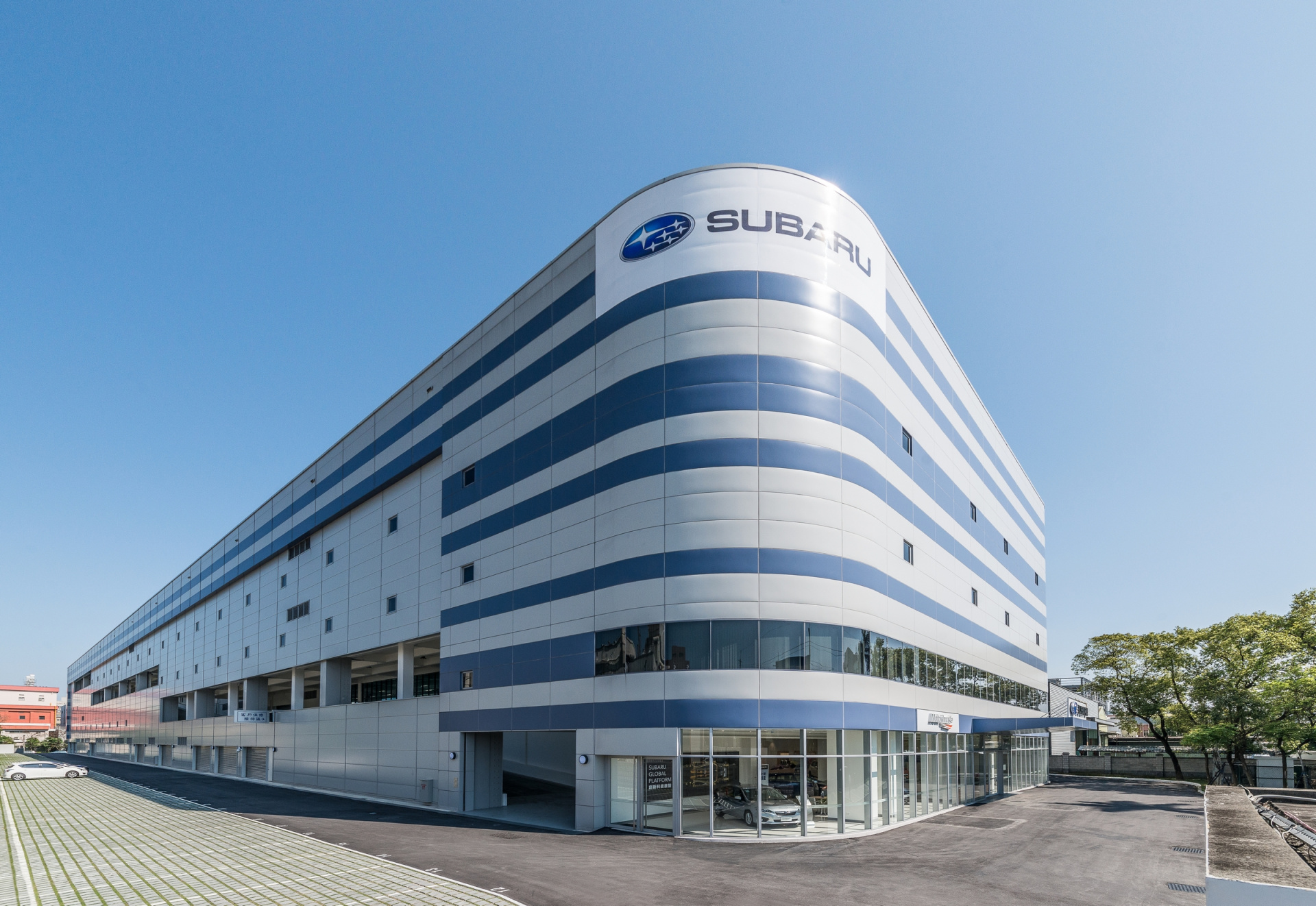 設計內容之一為結構的補強及增建,以符合現有的法規要求,第二為室內室外的整修,新增的坡道提供了由一樓到屋頂最簡捷的通道,也將內部不同的使用做了有效的串連。 如同以前為業主設計的內湖總部,這個外牆設計也強調汽車的流動感,利用近200米長的量體以及連絡各層的斜坡道,用不同顏色的鈦鋅板創造似乎無限的水平延伸,與內湖總部結合為新的速霸陸汽車的力量與操控性的形象。