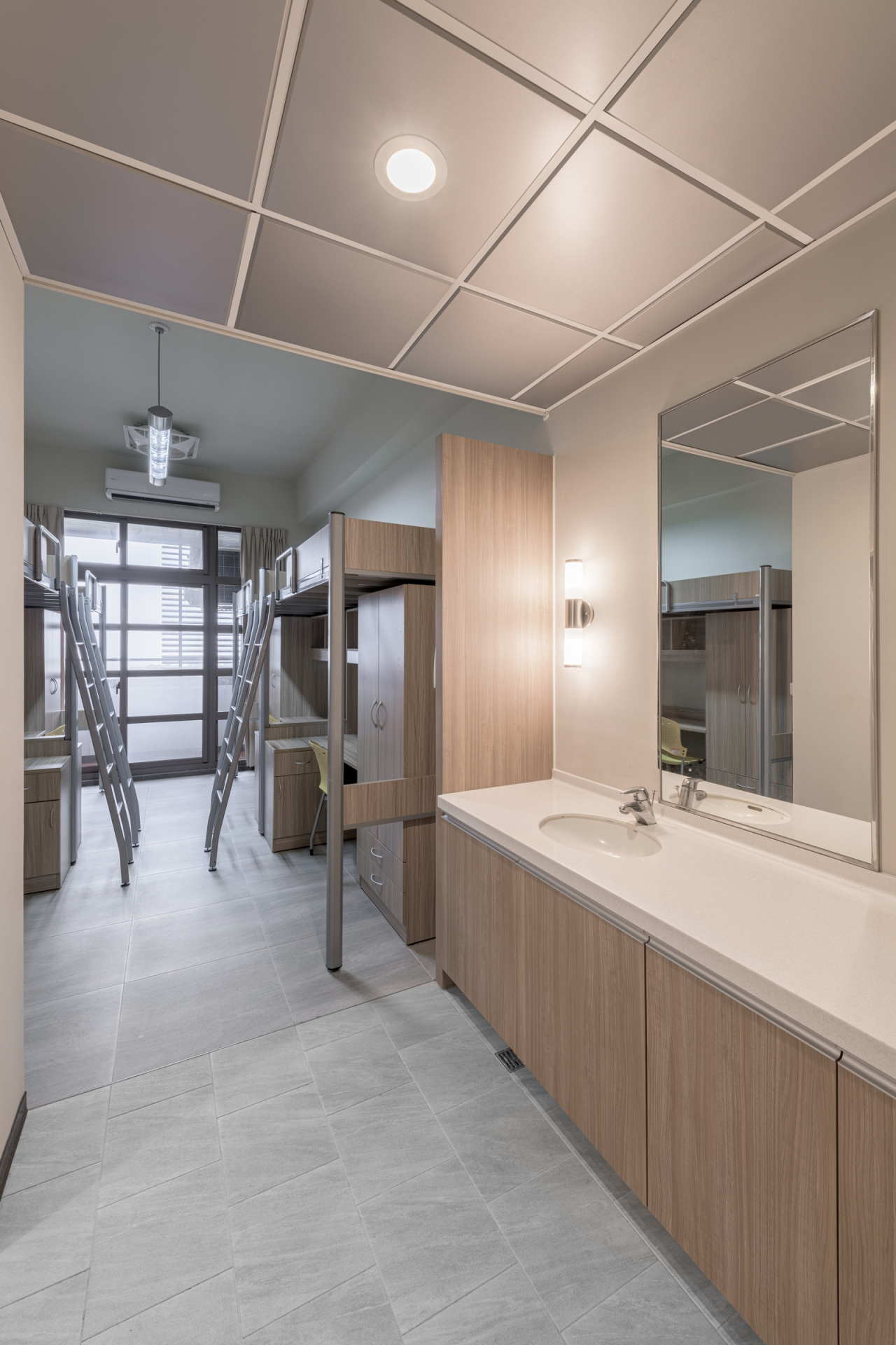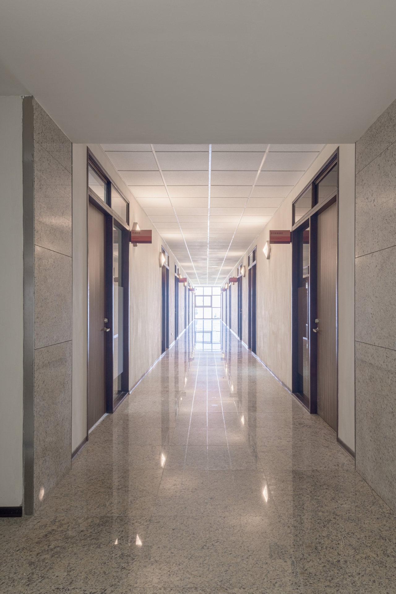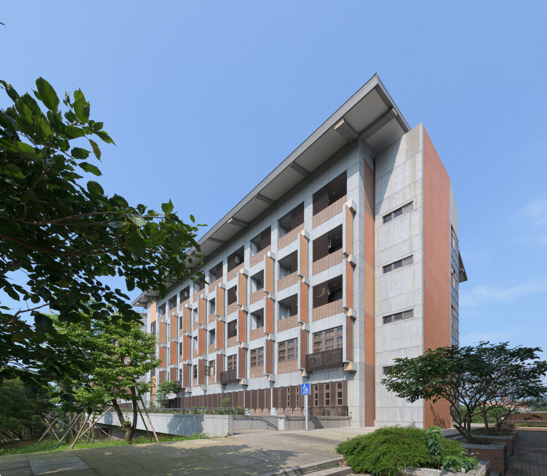 基督教會學校建築,在臺灣已有悠久的歷史,十九世紀末的淡水牛津學堂,六十年代的台中東海大學。 雖然年代與建造者相異,其共同的特色,乃兼具東方與西方、古典與現代的建築特色,既是殿堂又有前瞻的學院的氣質。而且,始自於「文藝復興人」,精通醫學、設計、營造、自然科學研究的傳教士,教會學校建築,也一直流傳著建築的樸實與準確的工藝感,與尊重自然環境的特色。 本校園已有約十五年發展歷史,本棟建築完成後,將與現有建築環繞谷地,形成一個合院式的格局,依山望海,也將是未來進入校園後,第一棟遇見的建築。 建築物的需求是教室及辦公室(地下一層局部,以及一、二、三樓),以及學生宿舍(四、五樓)的複合使用,平面為最經濟有效的中央走道,以及將服務核置於正中。 在建築手法上,以簡潔的長方形量體,及立面垂直水平的標準模矩分割,提供各個空間所需的窗戶、實牆、與陽台,並覆以斜屋頂,以符合北海岸風景區的規範。因基地方位是東西向,因此在柱列外掛垂直遮陽板,規則化的模矩之外,以外掛板的細部,呈現工藝的準確性,在灰白的基調下,以橘紅色系的點(樑柱框架交點),線(外掛遮陽板),面(南北向實牆層次化的面磚變化),提供一個與山海天空交界的環境,雖是人為設施卻與自然輝映的色彩印象。