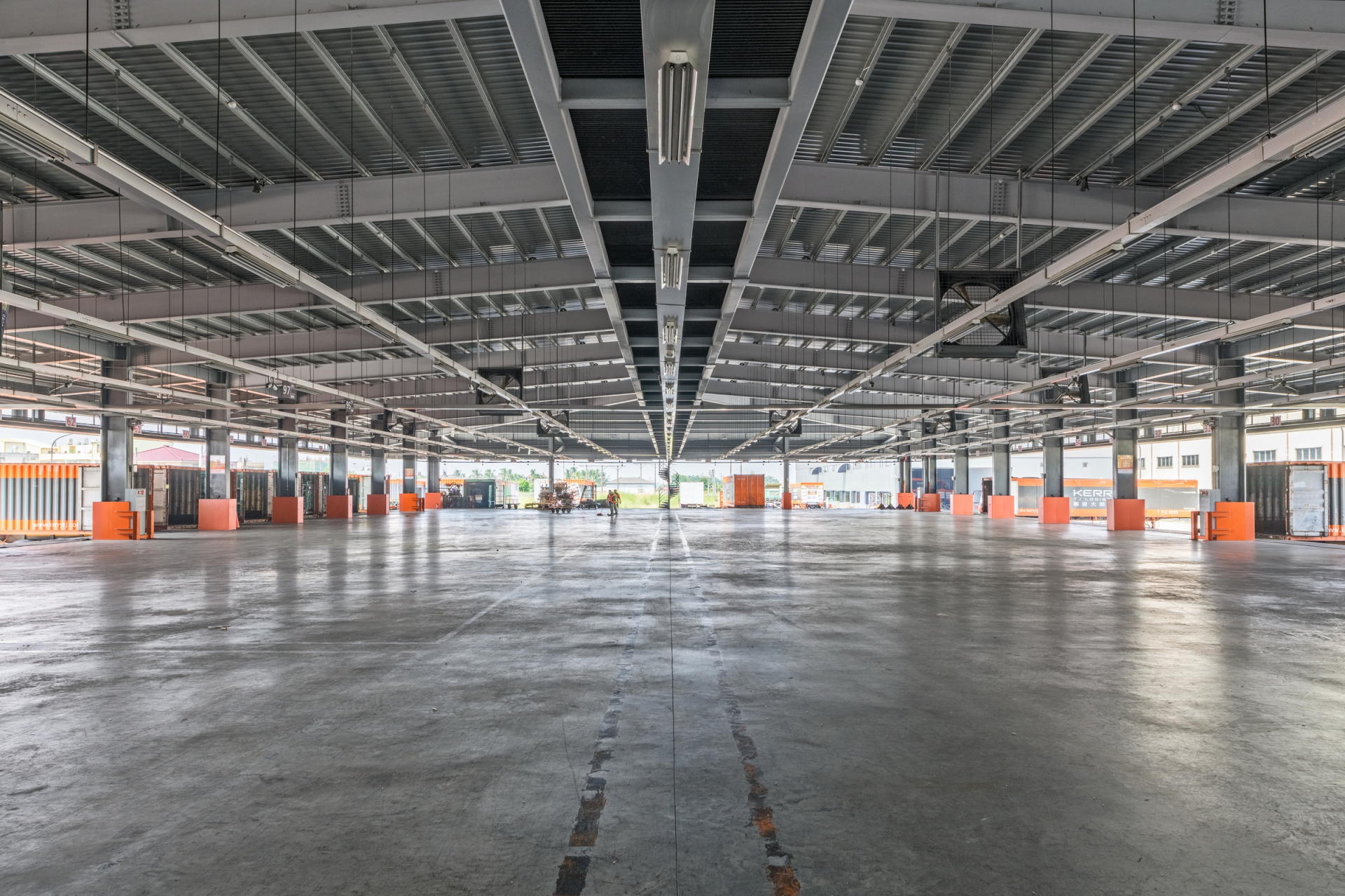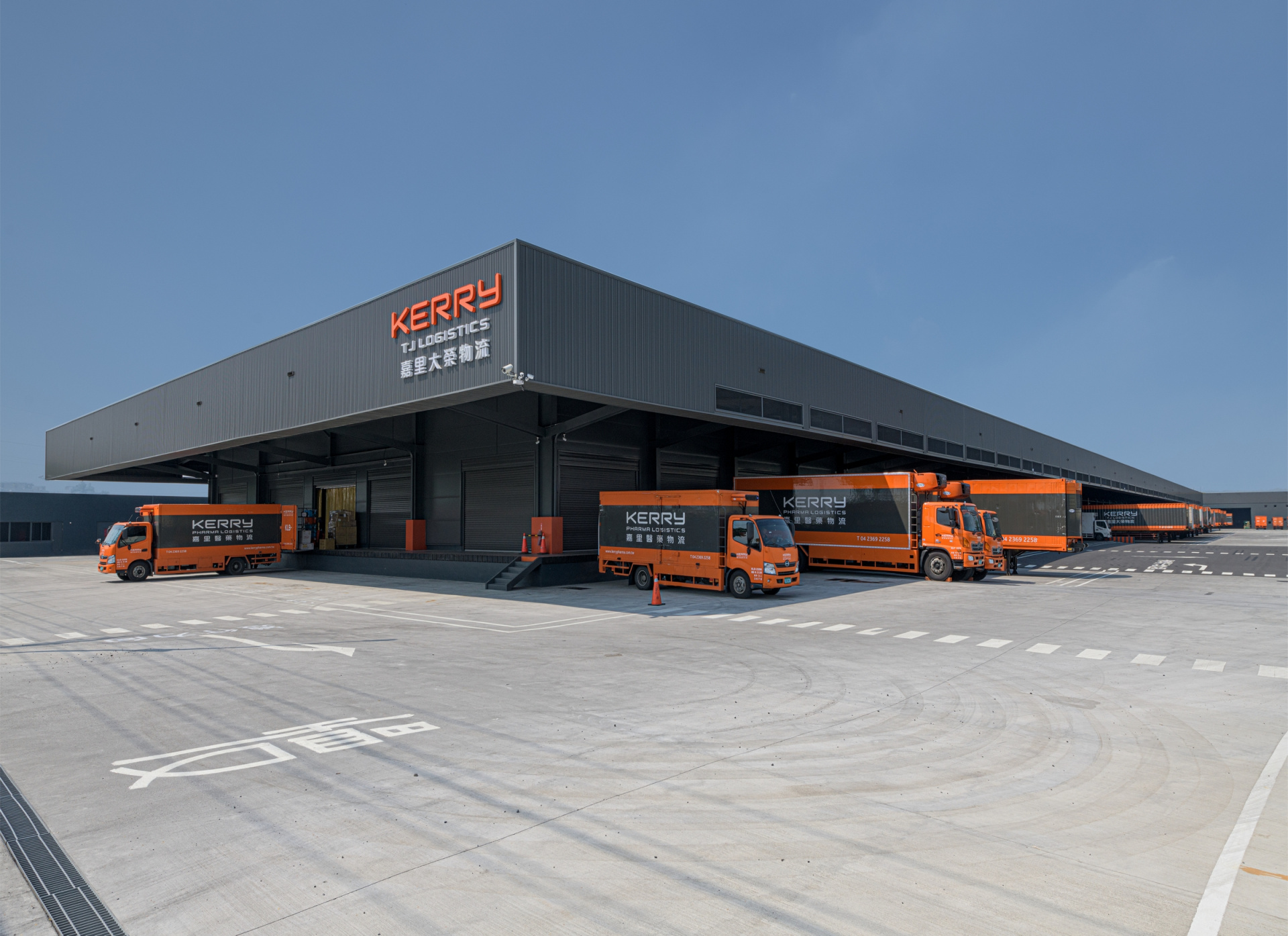 業主之總公司KERRY LOGISTICS對於旗下子公司之設施,設有明確的企業識別原則,本案A棟為第一棟低樓層的應用,也將成為未來類似案例的典範。本設計以「超現代」的美學,明確的幾何量體與色彩原則來變化,以出簷8米的巨大長方形量體,飄浮在裝缷碼頭之上,成為輕與重的強烈對比。