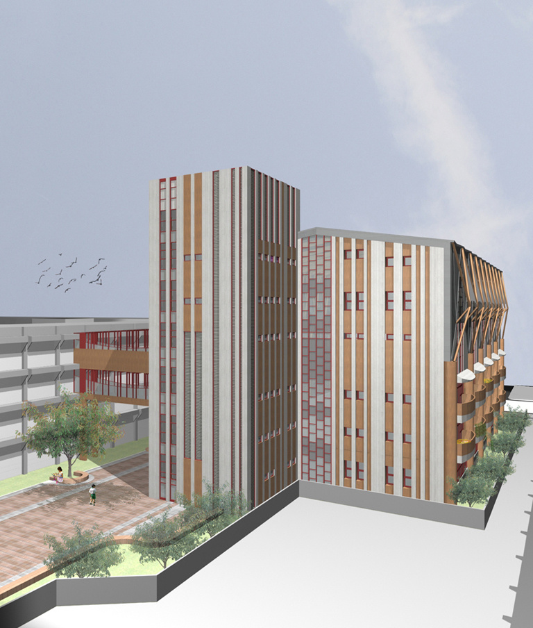 本校之校徽即以雙手呵護的綠葉為圖案,因此本校之建築及景觀,亦應與之呼應,並創造代表地區與時代的環境。本提案即以「教育、生態、文化」為主題,並且自校門口起,提供高度的識別性,同時在優質的教學空間外,亦提供聚合式活動、隨機教育之場所。本工程除提供本校所需之教育及輔助設施之外,亦應成為建築與景觀設計的活教材,在景觀及建築設計上,均提供最為生態考慮的永續設計,成為最節能,最具特色的校園建築。