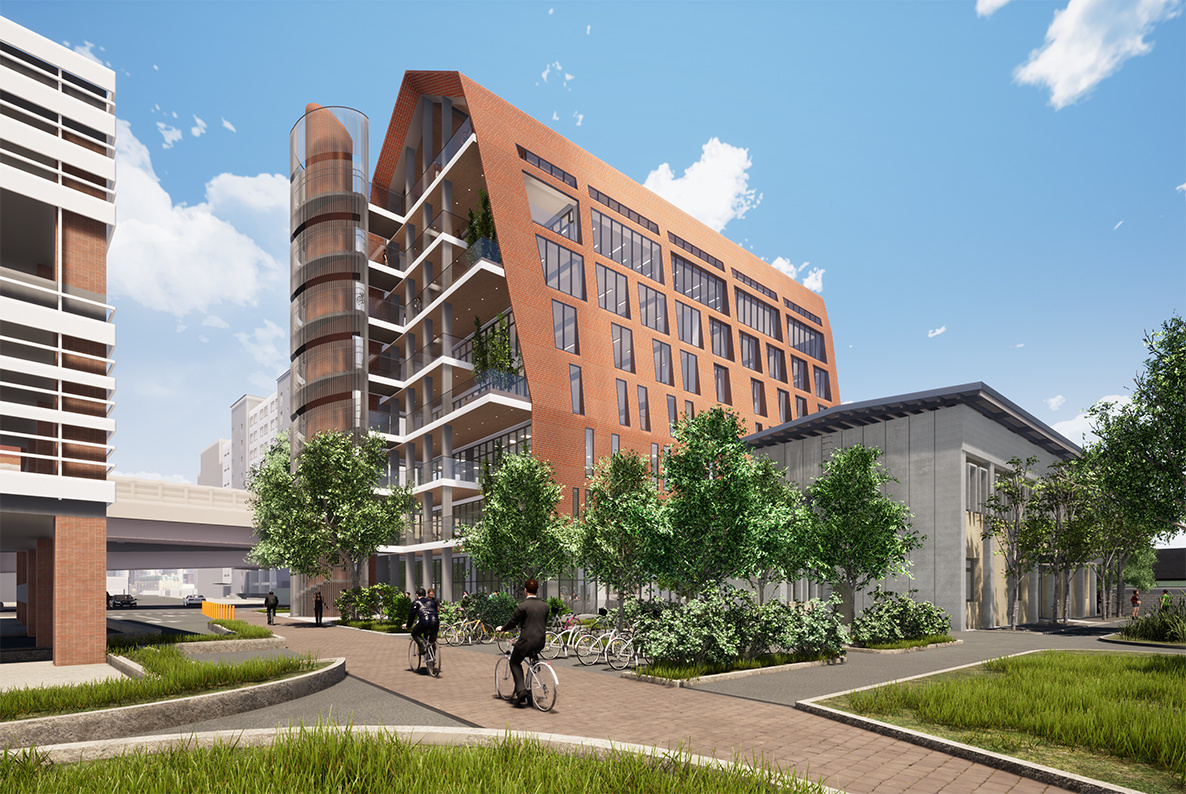 國立臺灣大學教研實習大樓新建工程 本案位於農場,是農學院副產品的展售及實習使用,本設計以殼倉為概念,滿足教學、實習、休閒、及課外活動的多元功能,以及農場的廣闊景觀。 業主 國立臺灣大學 地點 臺北 樓層高度 地上八層地下一層 總樓地板面積 4100 ㎡ 材質構造 鋼筋混凝土結構 設計年份 2021
